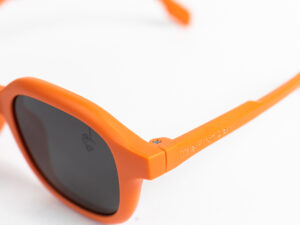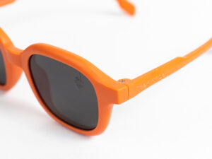 Óculos de Sol Infantil formato quadrado, na cor coral modelado para trazer conforto e beleza aos pequenos.
